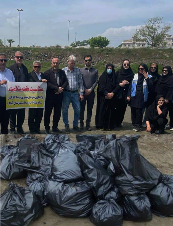 در ششمین روز از هفته سلامت ساحل دریای خزر در شهر آستارا توسط مدیر و کارکنان شبکه بهداشت و درمان آستارا با جمع آوری زباله پاکسازی شد